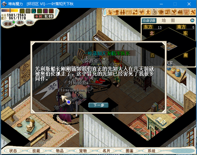 1、根据任务提示带着蓝色水晶项链来到艾克西利欧岛(152,144)处的民房(先知处)