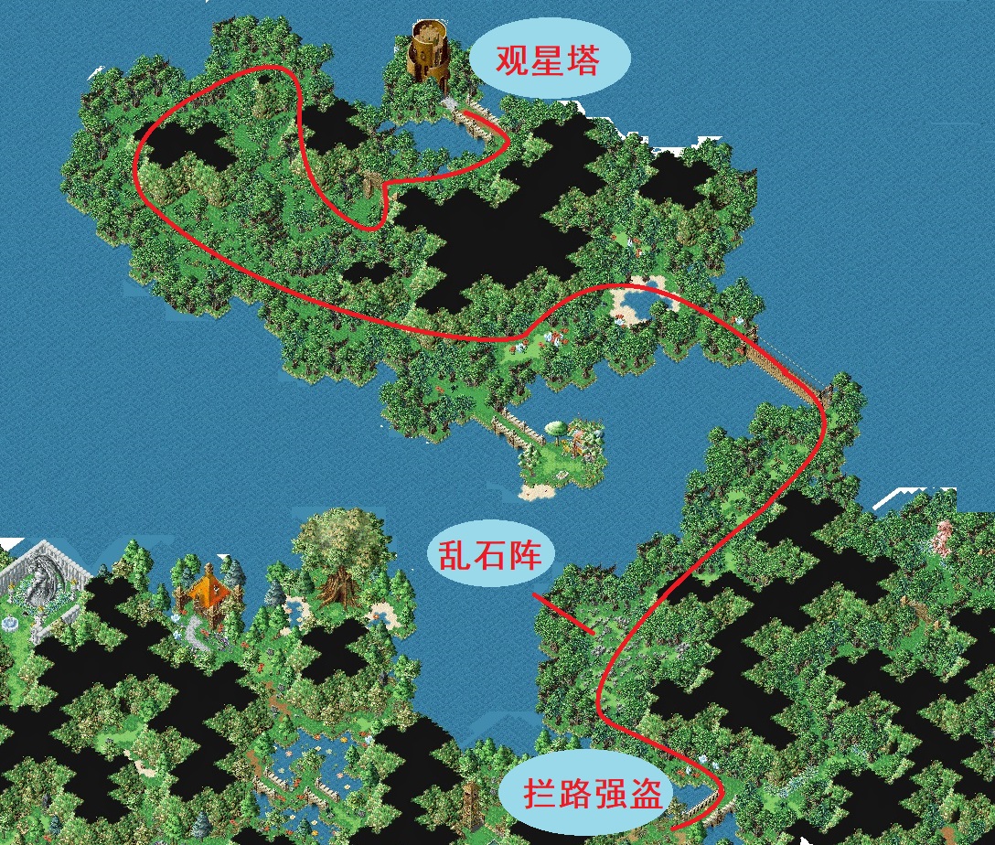 【之三受袭的迷途】 1. 到宣珑城王宫与侍女对话进入王宫内层。 2. 与王宫内层的茉莉公主对话得到植物百科。 3. 出宣珑城到东面的冀山山顶调查获取千叶香草。 4. 往回走遇到神秘人对话进入战斗。 5. 胜利后与茉莉公主对话然后下山回宣珑城。 6. 到宣珑城王宫与侍女对话进入王宫内层。 7. 与茉莉公主对话得到清茶。 8. 5分钟后再次与茉莉公主对话得到特制料理。 9. 出宣珑城往中走到达桥头与拦路的山贼对话进入战斗。 注:战斗胜利有几率掉落腰牌,持有腰牌时与拦路的山贼对话不需战斗即可过桥 10. 胜利后传到桥的另一端,继续往前走到公孙先生的家。 11. 与学徒小童对话得到长袍。 12. 回到乌鲁克雅往右走到洛浦山。 13. 到洛浦山山顶与公孙先生对话后往回走一点与观星一族??对话进入战斗。 14. 胜利后与茉莉公主对话得到文书。 15. 原路返回宣珑城到王宫与国王对话