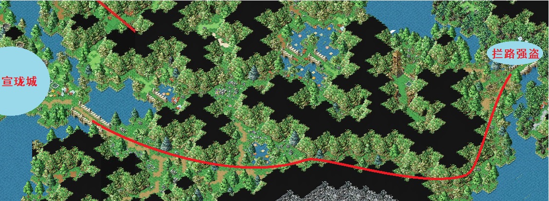 4. 从乌鲁克雅经过拦路的山贼后往东走在(284.229)处进入山谷。