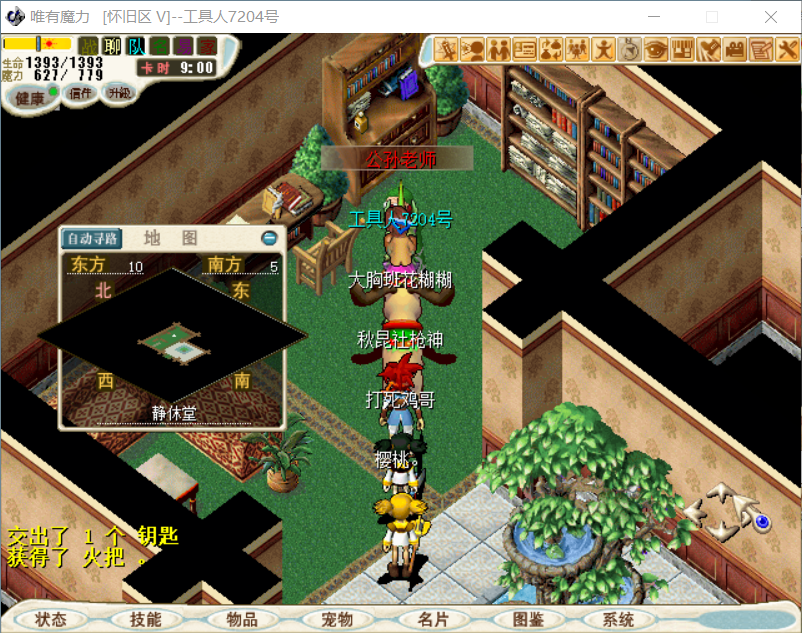 7. 穿过密道到静休堂与公孙老师对话得到火把。