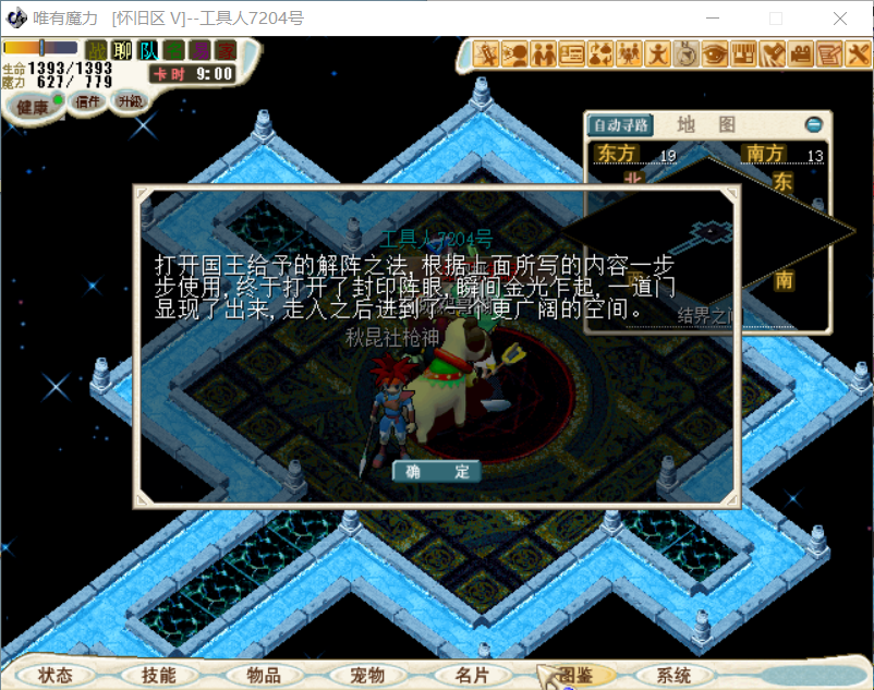 10. 找到东殿的四象封印-地,调查并传送至南殿。