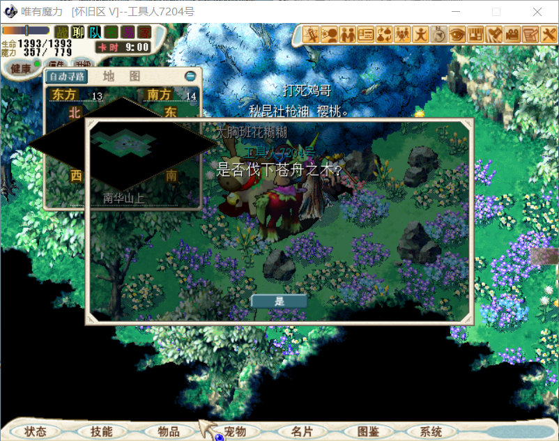 11. 到南华山上点击苍舟之树(14,14)得到苍舟之木。