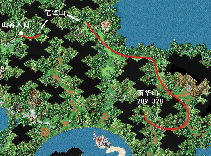 10. 从山谷入口出去然后经过笔锋山脉到南华山。
