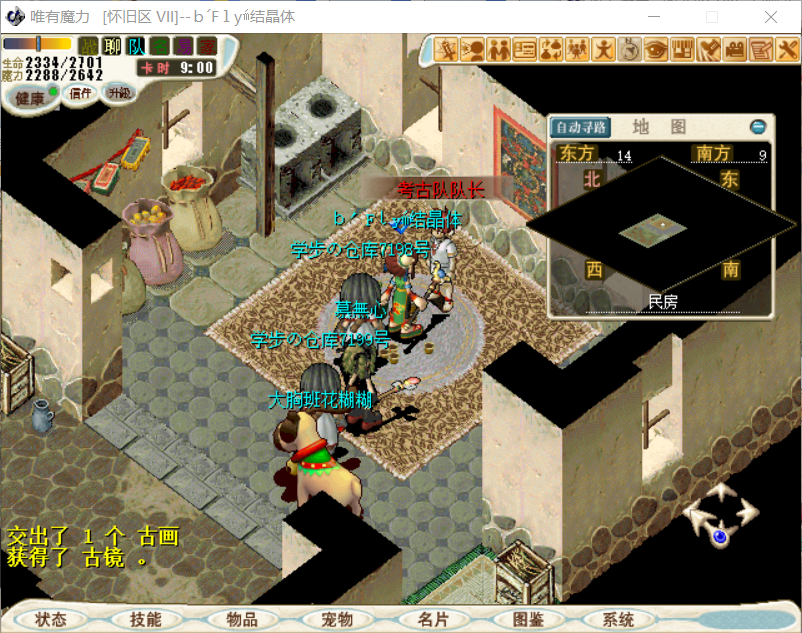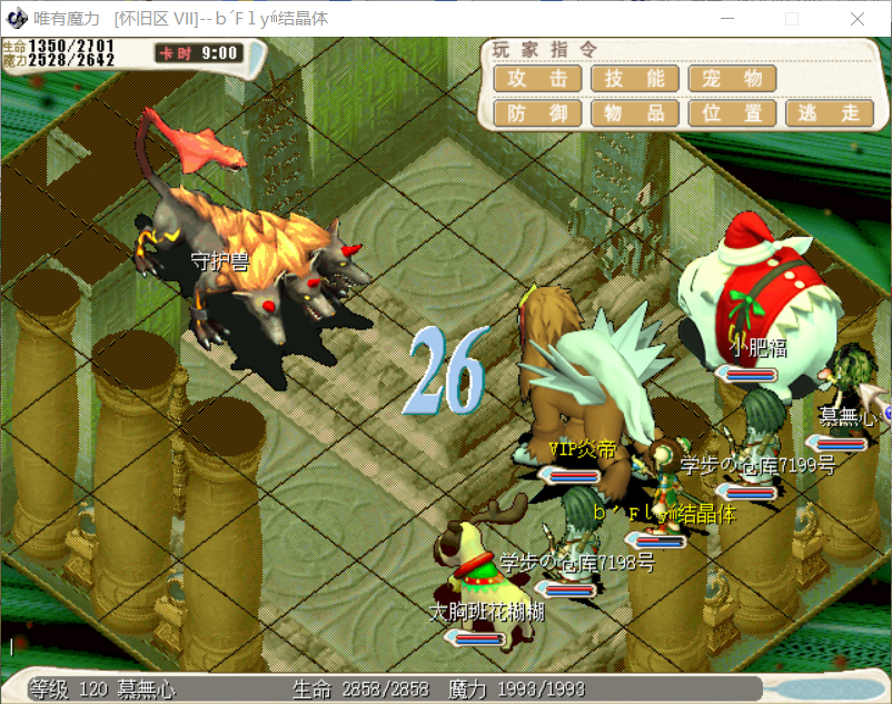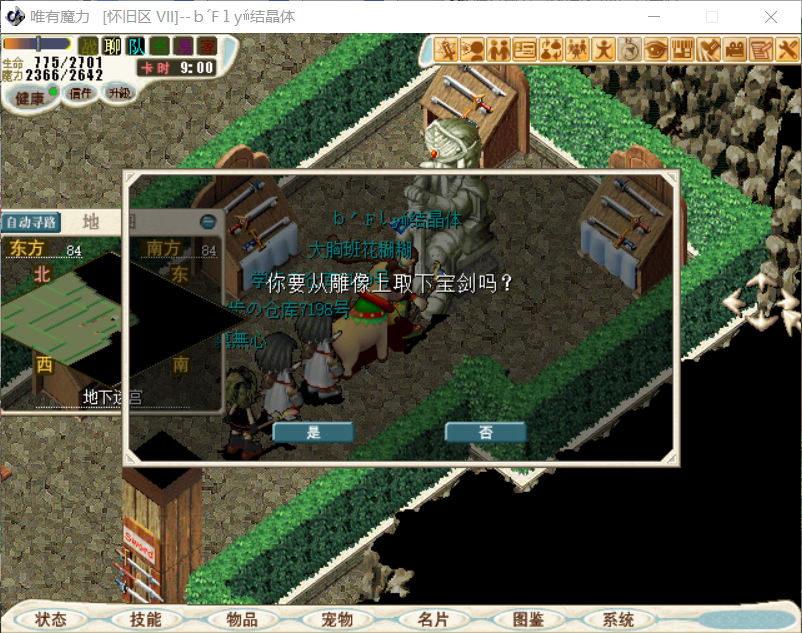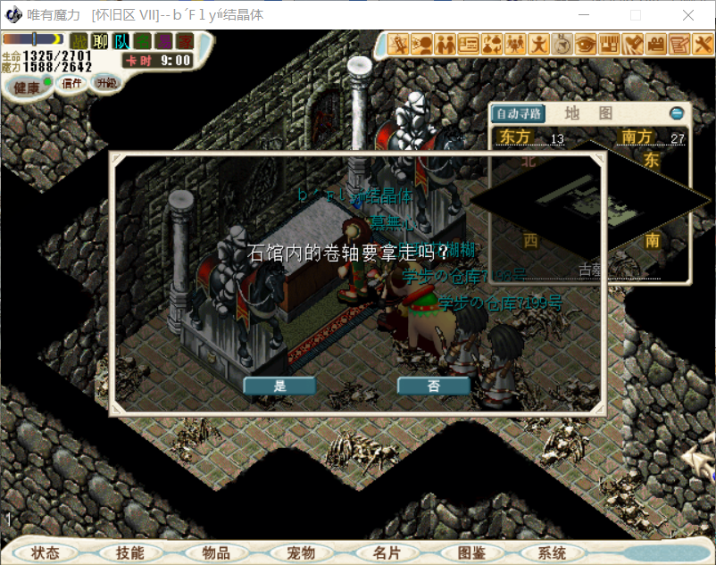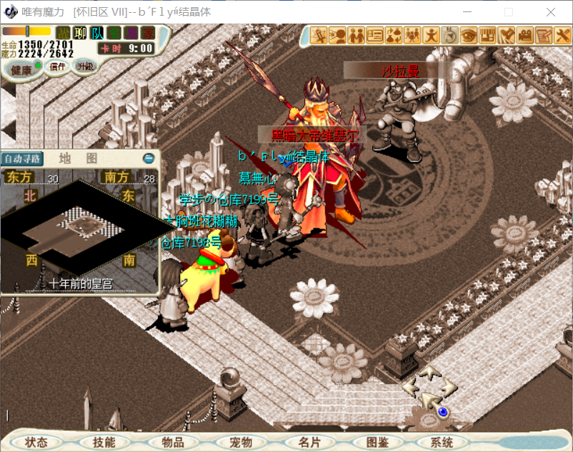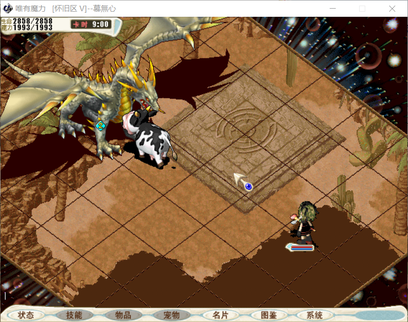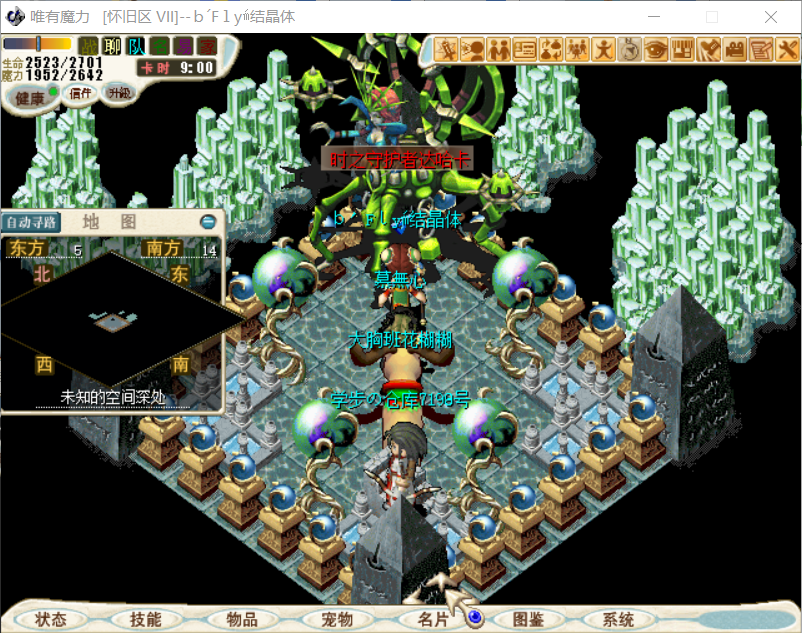 Boss会使用气功弹、混乱魔法、明镜(一下一万多)、圣盾等技能。建议抽魔合击。