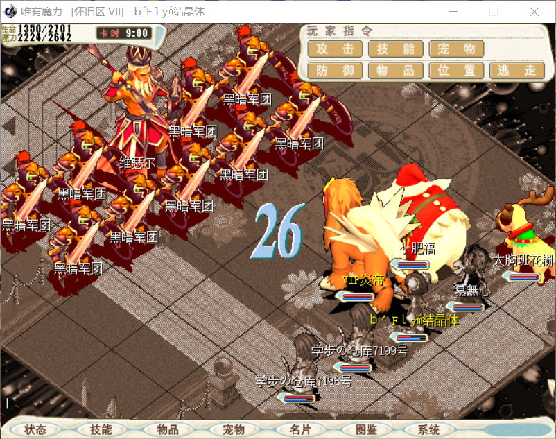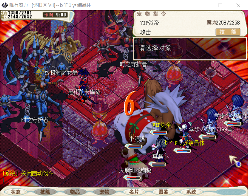 终极时之女皇(2动):强力恢复魔法、单体魔法,濒死时追加超强混乱魔法,魔被抽完后追加超强即死魔法。
