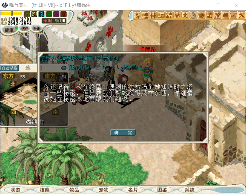 1、前往(351,163)的达斯坦村,在村中与卡库路(57,54)对话,获得邀请函
