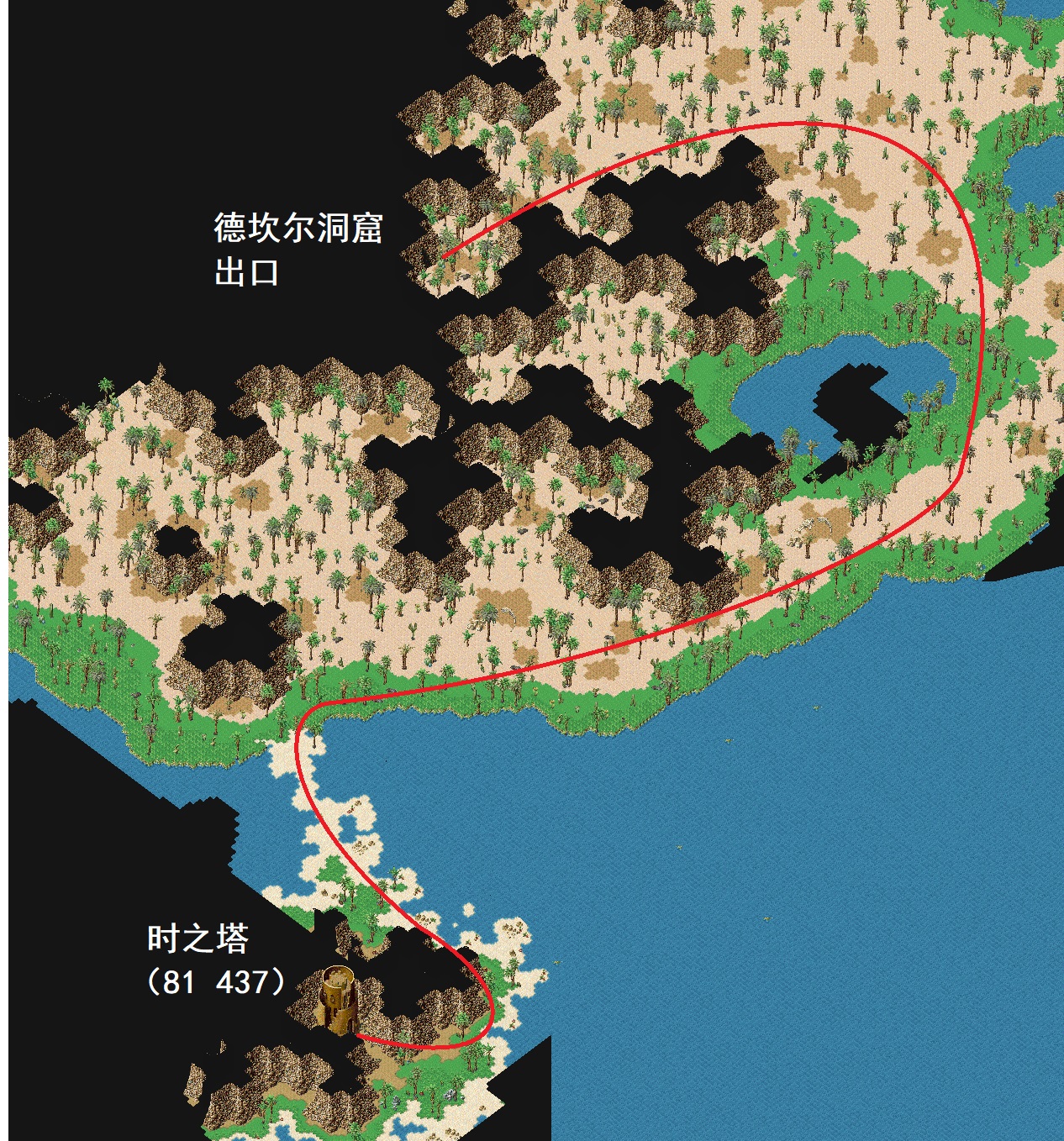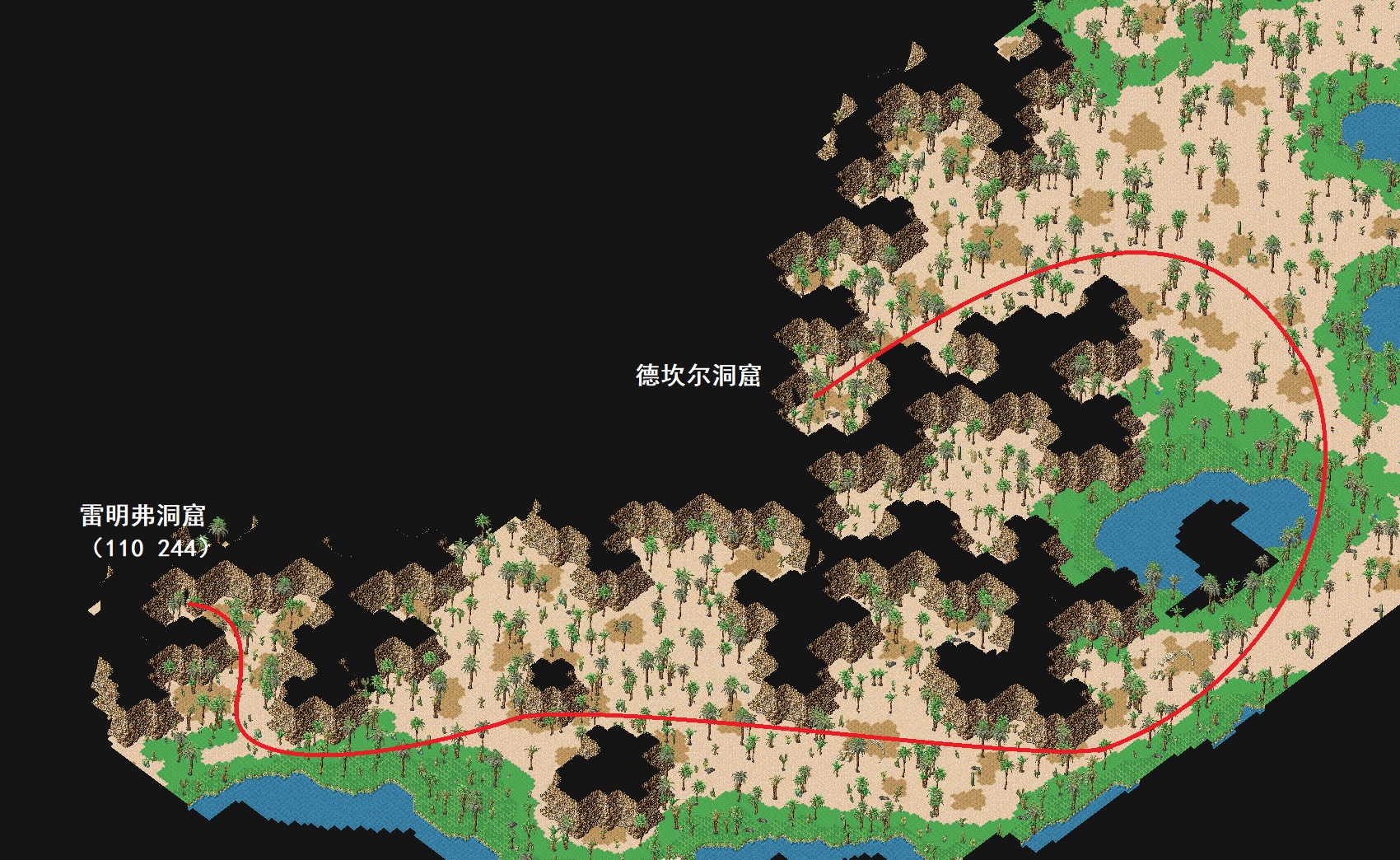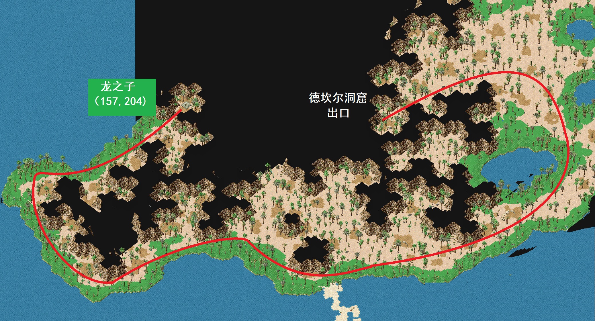 5、出村——穿过德坎尔洞窟——绕行一圈来到(157,204)处与龙之子对话进入龙谷。没有龙血的人无法进入。
