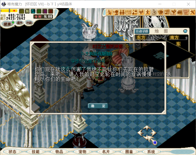 3、穿过时间旋涡来到时之殿,与时之女皇凯琳娜对话进入战斗。