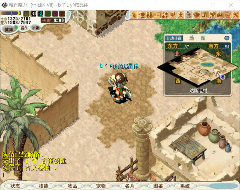 6、战斗胜利后,再次点击石棺,获得古文卷轴并传送回村子。