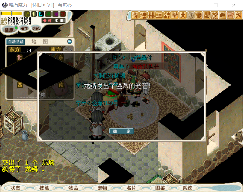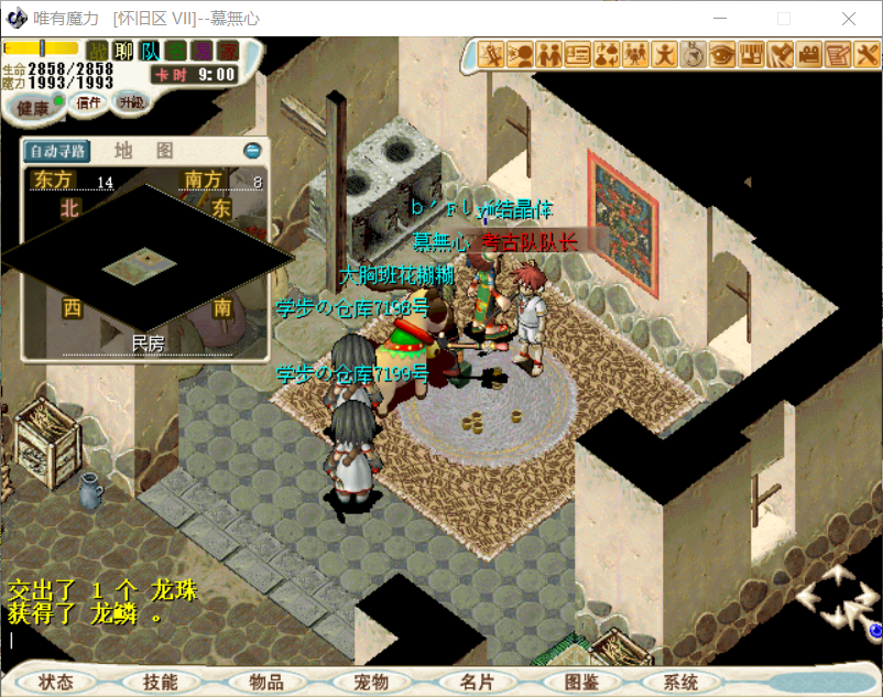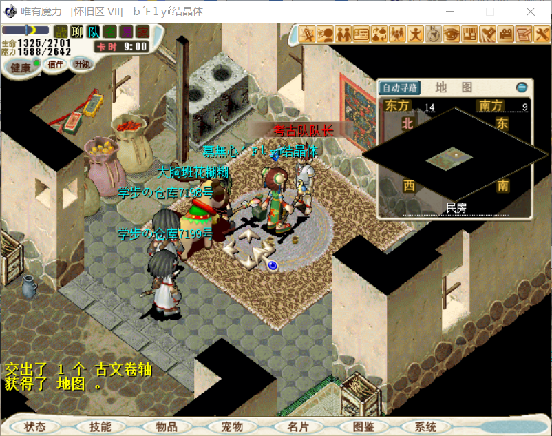 7、拿着古文卷轴,在民房(50,69)内与考古队队长杰克李对话,获得地图。