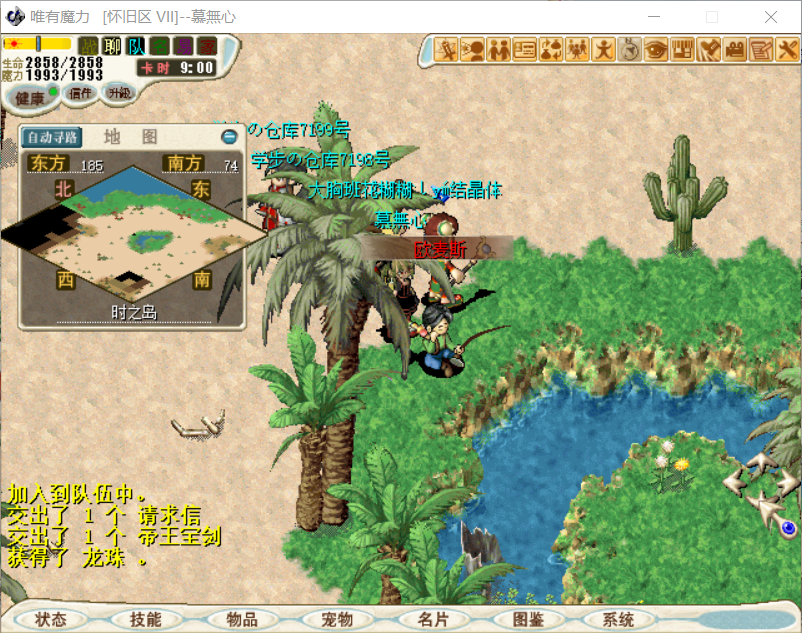 3、出村——穿过西切斯洞窟到达时之岛——在185.74处与钓鱼的欧麦斯对话,获得龙珠
