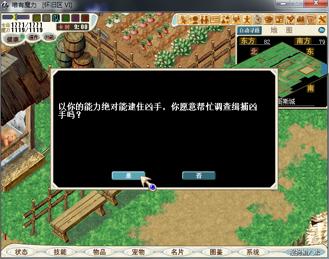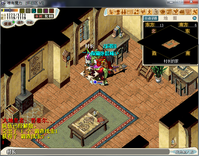 7、来到米尼基亚村找到村长并输入“哲基尔...”进入对话,交出“调查线索1”获得“调查线索2”