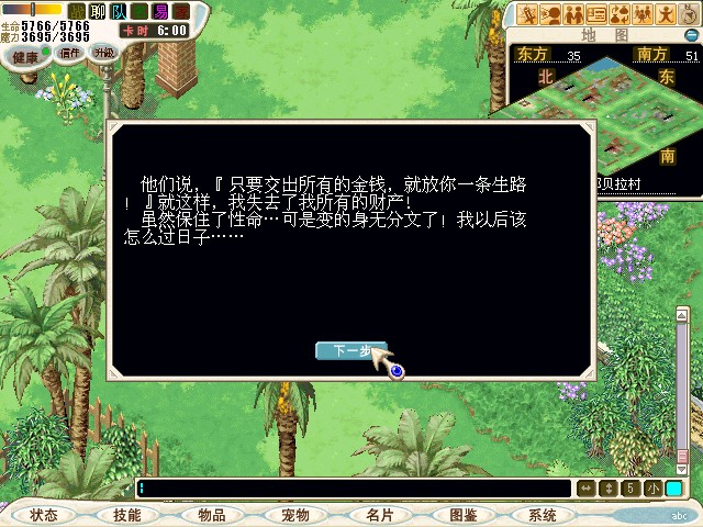 2.先经过海底通道 到达坎那贝拉村,与坎那贝拉村与 贵族米利圣特(34,52)对话开始任务。