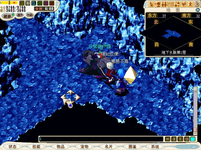 7.打倒头目后从后面的楼梯(21,6)继续往前走,经过二个楼梯后,进入(36,30)的黄色传送石进入地下水脉(随