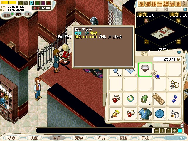 7.与柜台的蓓格妮雅淑女(22.11)说话选两次“是”。以100元取得[进水的盘子](耐久1)