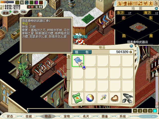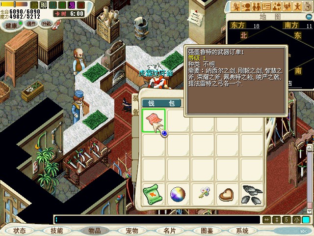 6.携带定单物品(11AB剑 11AB斧 11AB枪 11A弓)回到武器店对话 获得(武器定单2)