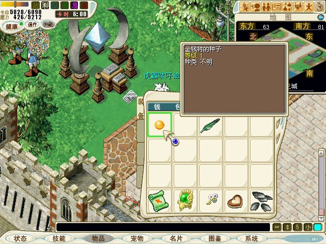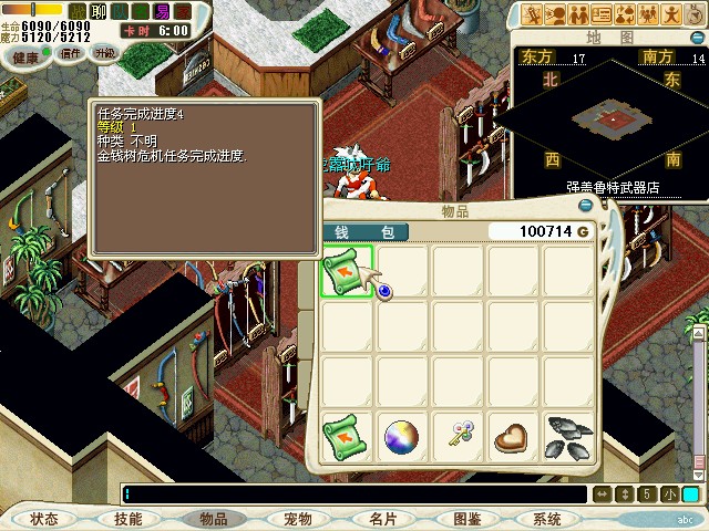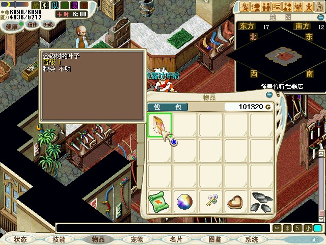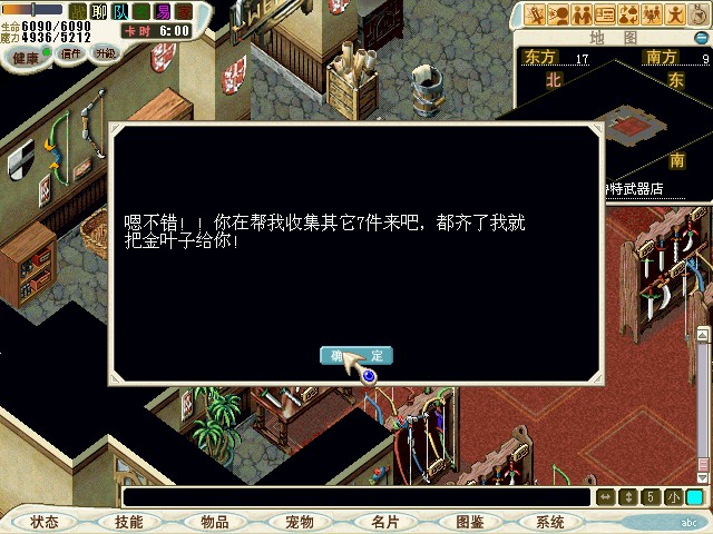 7.携带武器定单2物品(11B弓 11AB仗 11AB小刀 11AB回力)回到武器店对话 获得(金钱树的叶子)
