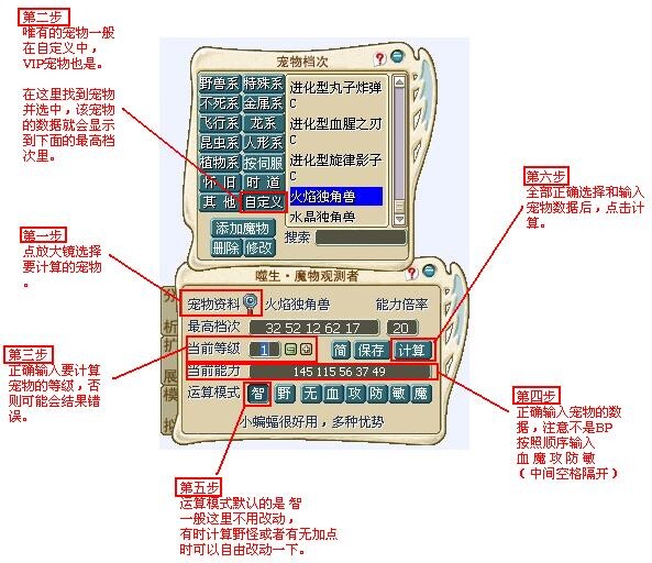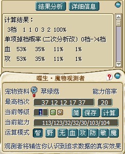 最后,在上面我在计算的时候输入宠物五围的方式是按照 血 魔 攻 防 敏 的格式输入的.