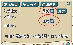点击计算后会出现筛选界面.这时就要选择宠物的BP/回复/精神了(BP是什么?即第一张图中椭圆形框中所示)