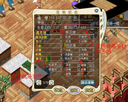 椭圆框里的就是宠物的BP,矩形框里的就是宠物的五围