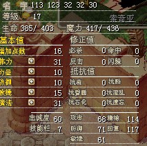 五围是:113 123 32 32 30 103 104(对应血 魔 攻 防 敏 精神 回复)