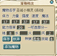 档次分布为:17 17 37 17 37-----8地2风 昆虫系 能力倍率20 技能栏为8
